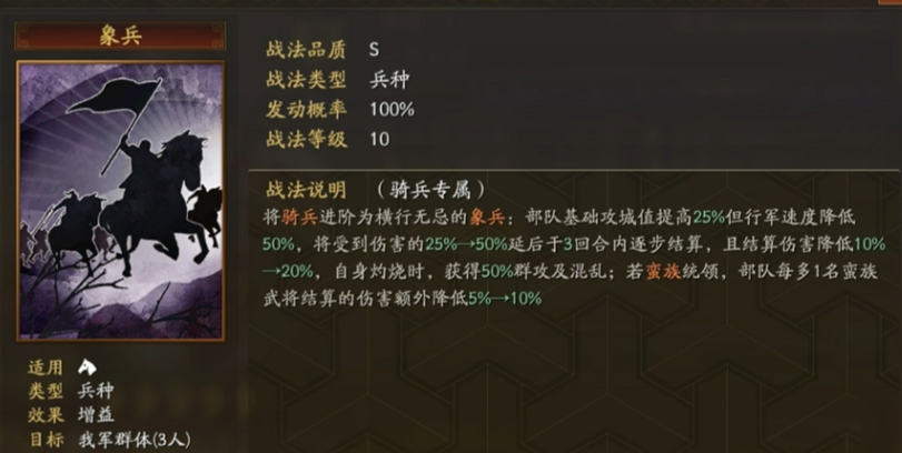 骑兵的战术功能非常多样,不仅限于正面冲锋。利用其高机动性,骑兵可以高效地执行侦察、拦截敌方运输队、骚扰资源点等游击任务,在大型国战中也能承担快速穿插、分割敌军阵型的职责。而其疾行能力与地图控制直接相关,能帮助同盟更快地扩张领土和调整防御部署。为了发挥不同战术需求,游戏提供了象兵、西凉铁骑和虎豹骑三种特殊兵种选择,例如象兵提供独特的减伤和攻城能力,西凉铁骑提升会心爆发,虎豹骑则稳定增加突击战法发动率。