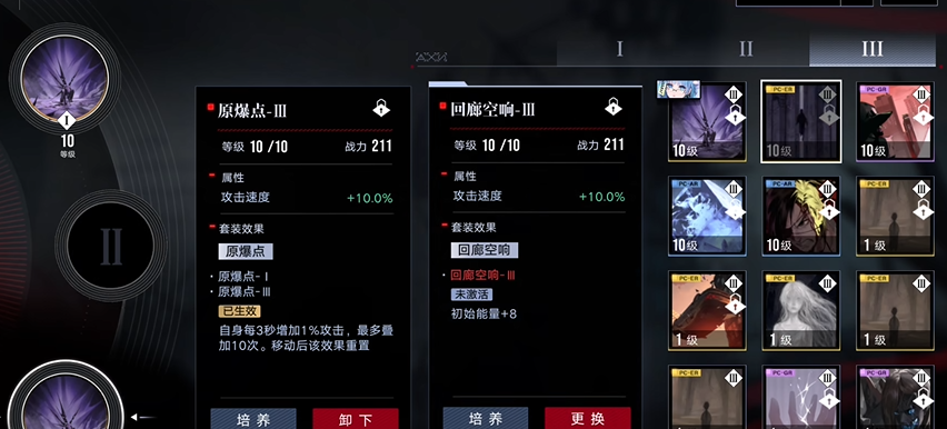 女仆雷比尼斯的核心烙印搭配普遍围绕调律·零、奇点与回廊空响组成的攻速充能流,这一组合能最大化发挥其高频破核与技能刷新的特性。调律·零位于一号位,效果是使用局长技能后为自身回复能量;奇点作为二号位散件,能在角色移动后提升攻速;三号位的回廊空响则提供珍贵的初始能量。这套搭配的核心逻辑在于协同增效:初始能量与局长技能回能加速女仆第一个大招的启动,快速进入破核循环;而移动后的攻速提升则显著增强了其普攻输出与能量自然回复效率,使其在破核间隙也能贡献可观伤害,并更快地攒出下一个大招,形成良性的技能循环。该搭配适用于绝大多数需要女仆持续处理多核心敌人的场景,是其泛用性最高的毕业选择之一。