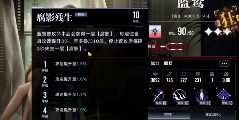 蓝鹫重构后成为法暴队核心,技能伤害可暴击的特性使其在法伤领域脱颖而出,搭配耶莱娜的背水增伤与玉骨的暴击辅助,7次大招爆发倍率超35万%,重构卓娅则通过干涉叠加融入超限体系,提供单次高伤破核能力。