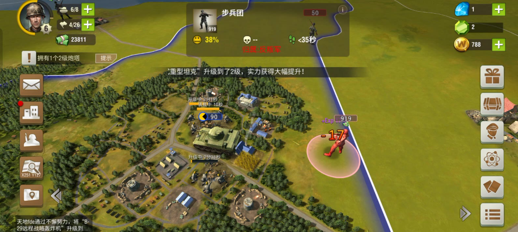 面对高等级炮楼,综合运用兵种搭配、战术选择和地形利用更为重要。炮楼作为固定防御工事,配备重型火炮和机枪塔,对步兵、坦克甚至空中单位都能造成显著伤害,因此正面强攻往往损失惨重。建议优先使用远程火力进行压制,比如利用炮兵单位,同时可以搭配工程兵或特种部队执行定点爆破任务。在行动前,务必利用侦察单位提前获取炮楼的防御布局信息。资源管理是持续作战的基础,攻坚战会消耗大量弹药和维修材料,行动前必须储备足够的资源。通过科技研发,优先升级反装甲武器和爆破技术,并研发提高炮兵射程的科技,以便在安全距离外削弱炮楼防御。地形和天气也会影响作战,山地或森林环境能提供天然掩护,降低炮楼直射火力的命中率,夜间或雨雾天气可能干扰其瞄准系统,都是可以利用的时机。