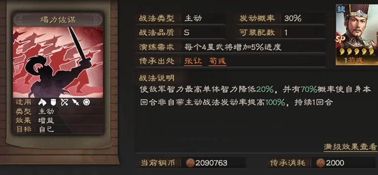 对于SP刘晔,其战法搭配则更侧重于发挥其独特的偷取智力与治疗联动机制。最佳搭配同样是竭力佐谋与刮骨疗毒。竭力佐谋的发动可以稳定触发SP刘晔自带战法中的治疗效果,同时其降低敌方智力的效果也能与偷取智力形成叠加,进一步压制敌方法师;刮骨疗毒则作为另一主动战法,能再次触发治疗并解决我军单体武将的伤病状态,这套组合能构建出强大的治疗与属性压制链条,使SP刘晔成为顶尖的辅助角色。若追求其他路线,也可考虑搭配焰逐风飞、伪书相见等主动谋略伤害或控制战法,以更多频率地触发自带战法的治疗部分。