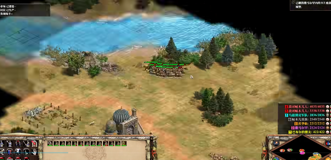 第三关以机动控图为主,保护贸易线不被切断,优先升级骑兵相关科技,用少量轻骑骚扰敌方伐木与采矿点,主力守好关键路口,同时补双城镇中心爆农,保证黄金与木材供应,攒够兵力后集中冲车与骑士组合,先拆箭塔再拆兵营,逐步压缩敌方空间。