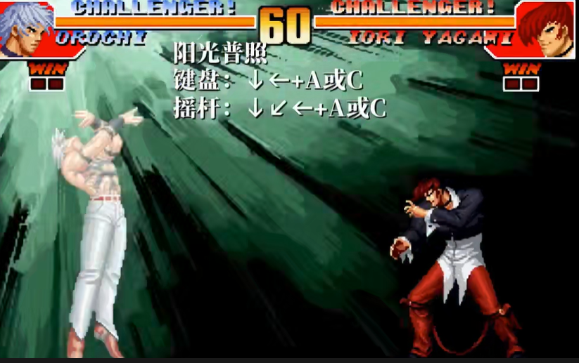 大蛇的隐藏大招阳光普照是游戏中最具威慑力的超必杀技之一,其出招指令为↓↙←+轻拳或重拳。该技能释放后会在全屏范围内形成多段打击效果,对手无法通过常规防御手段完全抵挡。阳光普照的伤害判定持续时间较长,尤其在版边使用时能形成压制性优势,但需注意