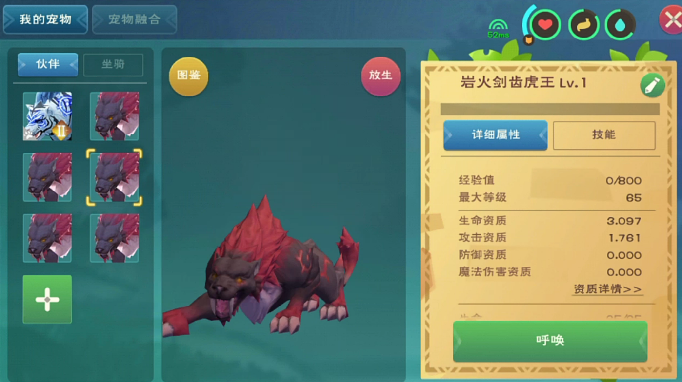 除了普通的剑齿虎王,游戏里还有一种更稀有的岩火剑齿虎王,主要分布在拉鲁火山区域,坐标包括(9287,8784)、(9480,8566)、(10210,8357)、(10530,7943)和(9759,7454)。它的刷新时间更长,大约80分钟,驯服难度也更高,但作为坐骑或战斗宠物都非常强力。岩火剑齿虎王的饲料和普通剑齿虎王类似,但需要的材料可能略有不同,记得提前查清楚配方。