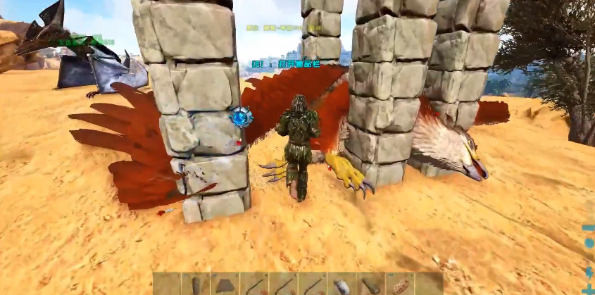 狮鹫被击晕后,打开它的背包放入优质生肉或生羊肉,异特龙蛋饲料效果最好。驯养期间记得在周围放置拒马,防止其他食肉恐龙干扰。等驯养进度达到100%,就能成功拥有一只狮鹫了。驯服后的狮鹫不需要鞍具就能骑乘,还能使用急速升空和俯冲攻击等技巧,非常适合长途旅行和战斗。