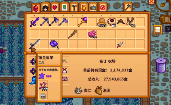 玩家必须拥有玻璃纤维鱼竿或更高级的铱金鱼竿,基础竹鱼竿和训练用鱼竿无法安装鱼饵。鱼饵的作用是加快鱼上钩速度并减少钓到垃圾的概率,因此尽早升级鱼竿并学会使用鱼饵对钓鱼体验有显著提升。鱼饵的安装方法较为简单但需注意操作细节。打开背包后,用鼠标左键点击鱼饵,再右键点击鱼竿即可完成安装。若使用手柄操作,Xbox手柄需按A键选择鱼饵后按X键装备,PS4手柄按X键选择后按□键装备,Switch Pro手柄则按A键选择后按Y键装备。每次钓鱼会消耗一个鱼饵,玩家可随时右键点击已装备鱼饵的鱼竿取回剩余鱼饵。