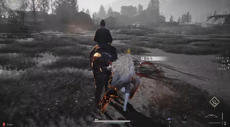 成功接取任务后,根据任务指引找到目标黑马,其捕捉方法区别于普通马匹,需要玩家使用特定的技能停渊止水,这个技能通常是远程攻击类武学的一部分,在准备捕捉时,建议提前将对应的武器如弓箭切换为当前装备,并在马匹附近使用该技能以创造捕获时机,随后按照游戏提示靠近并按F键进行抓取操作。
