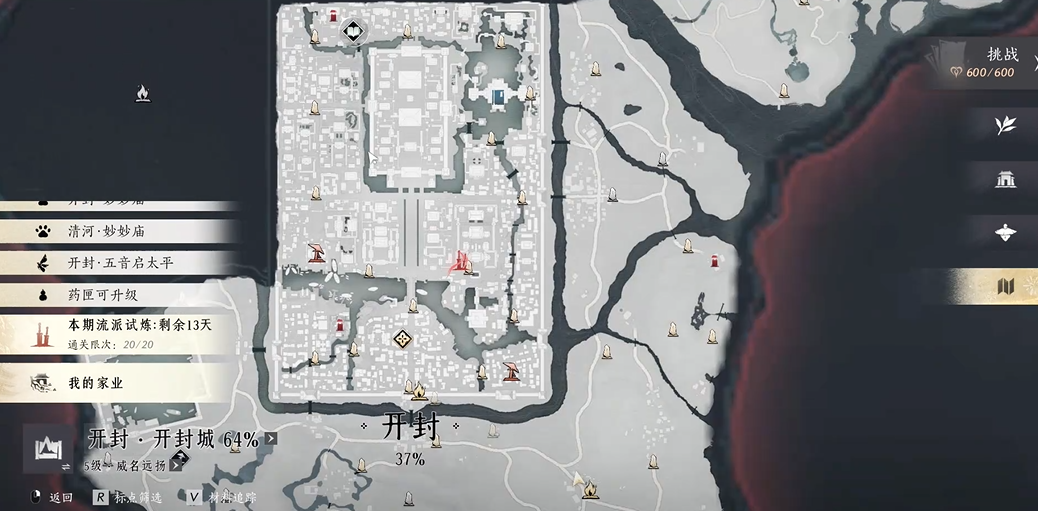 游戏会鼓励玩家投入更多精力进行大世界探索,例如在开封城内,玩家需要攀上屋顶摘取风巢燕盏,或是在街头巷尾留意正在爬行的悼月金蟾,这个过程自然而然地引导玩家游历开封的各个角落,包括醉花阴、勾栏瓦肆、百工坊等著名地点,从而在收集之余,沉浸式地体验五代十国末期这座城市的繁华风貌与丰富细节,充分感受游戏所营造的开放历史氛围。