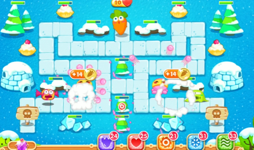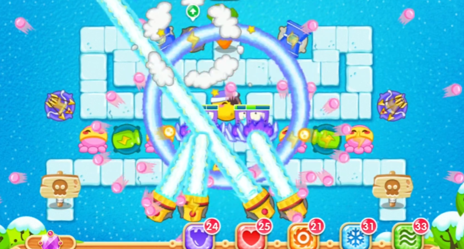 若玩家挑战的是胡桃夹子主题的第84关,同样是困难模式的八波敌人,但核心炮塔转变为电罐和乒乓球拍。标准流程始于在左上方位置建造一个电罐炮塔,随后在右侧空地放置乒乓球拍。接下来的步骤包括在上方增建电罐,在旋转木马右侧增建并升级乒乓球拍,以及在图中左侧位置补充两个电罐,最终形成推荐的防御阵型以应对所有攻击波次。