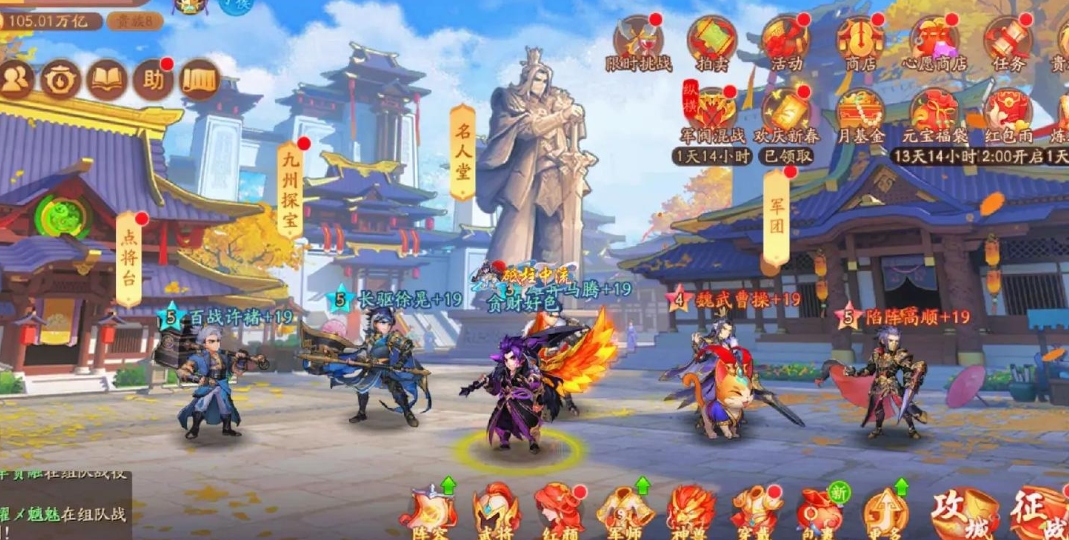阵容构建需定位互补,完整阵容包含核心输出、副输出、控制减益、续航辅助四类角色,避免全输出阵容易被克制的问题。站位遵循防御武将站前排扛伤,辅助控制居中,输出武将后置的原则,确保核心输出稳定输出。日常玩法中,试炼塔、三国无双、限时活动是核心资源来源,稳定获取武将碎片、觉醒石、兵符材料,累积资源集中投入核心体系。平民玩家优先走单阵营路线,先培养1名核心输出与1名辅助,逐步凑齐羁绊阵容,不盲目追求高稀有度低星武将,高星红将过渡更稳定,后期再逐步替换为金将、虹金武将,稳步提升阵容强度。