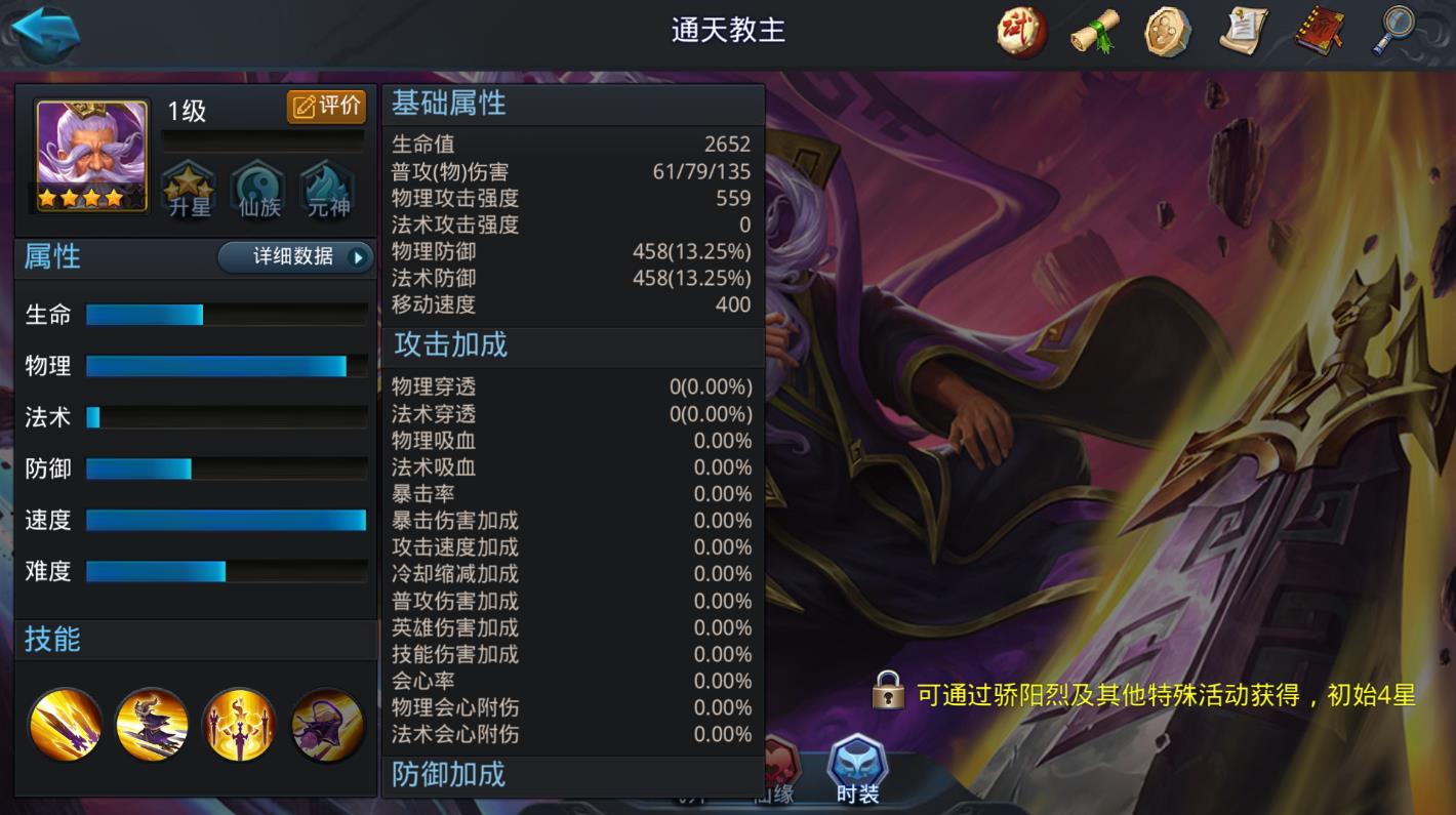 通天教主在游戏中是个超强力的物理输出战士,他的技能组合既有爆发伤害又有控制效果,玩好了能让你在战斗中轻松压制对手。一技能剑舞可以连续攻击前方范围内的敌人四次,每次命中还能让敌人沉默一秒,这个技能特别适合用来打断对手的连招。二技能御剑是个位移
