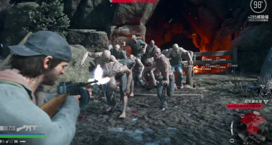 暴走潮是玩家必须面对的终极挑战,这些由数百名感染者组成的尸群移动迅速且攻击性极强,游戏设置了三次强制性的暴走潮战斗,每一次都紧密关联故事发展,考验玩家的生存技巧和战术规划能力。首次主线暴走潮出现在生存的代价任务中,战斗发生在狭窄昏暗的熔岩洞穴内,这里环境压抑且资源有限,玩家需要利用NERO留下的照明弹和洞穴中的岩石裂缝地形,诱导感染者绕路以创造输出机会,这场战斗采用双波次设计,强调弹药管理和快速补给,避免陷入弹尽粮绝的困境。