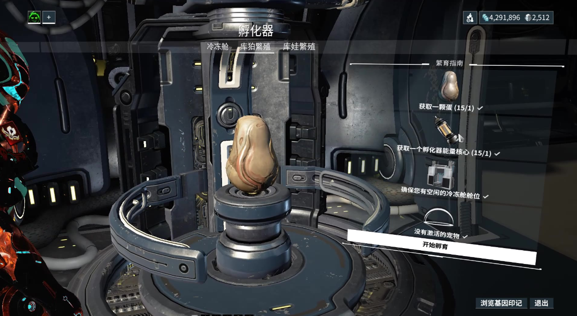解锁孵化仓后,你需要寻找库狛蛋来开始孵化过程。库狛蛋通常在地球任务的库狛巢穴中随机掉落,摧毁巢穴有几率获得蛋,如果没找到可以直接放弃任务重试。获得蛋后,将其放入孵化仓孵化,这个过程需要等待48小时,期间可以用白金加速,孵化完成后库狛会进入幼年期,再等两天登录让它长大成年。