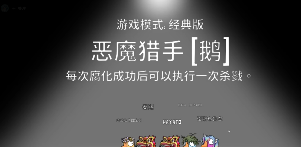 恶魔猎手是鹅阵营中一个非常特殊的角色,取代了正义使者的位置,需要通过腐化才能获得刀人能力。这个角色适合对自己判断力有信心的玩家,因为腐化状态会带来视野限制,需要谨慎选择开刀时机。开局时恶魔猎手处于普通状态,无法直接刀人,必须通过特定方式进入