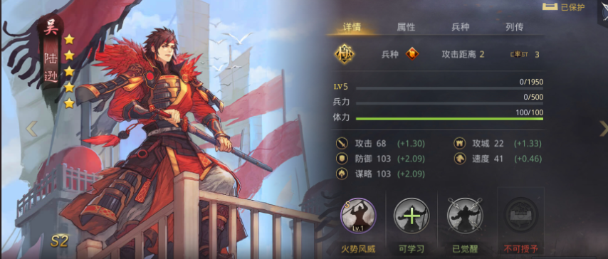太史慈定位为兼具爆发与控制的弓兵武将,自带战法方阵突击能通过普攻触发追加攻击并附加混乱效果,但30%的发动率需要搭配连击类战法提升稳定性。作为2.5C武将,他在开荒期和中期打架都有不错表现,尤其适合与吴国菜刀队或平民混搭阵容配合。属性加点建