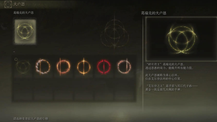 大卢恩是击败半神BOSS后获得的特殊道具,激活后能提供各种属性加成和特殊效果。玩家在战胜特定半神后可以获得对应的大卢恩,但这些大卢恩初始处于未激活状态。激活过程分为两个关键步骤:首先前往对应的神授塔解锁大卢恩的内在力量,然后在任意赐福点装备